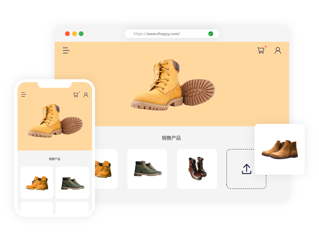 无论您是销售鞋服包、珠宝首饰或是电子配件,多种风格主题供您选择