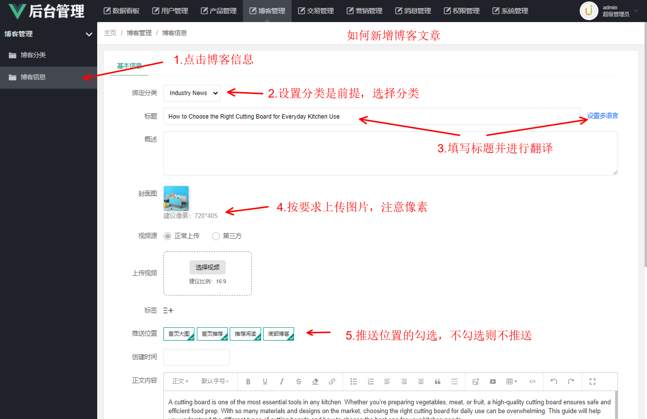 博客可做多种分类,也可以把案例展示,说明书等做文章状态展示